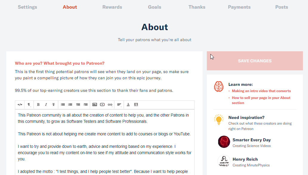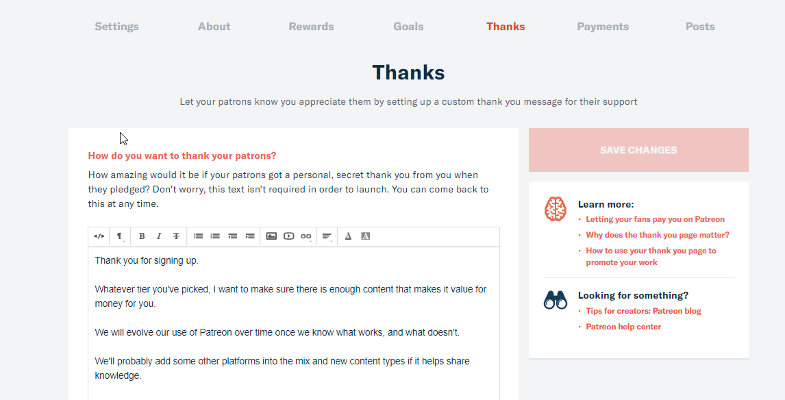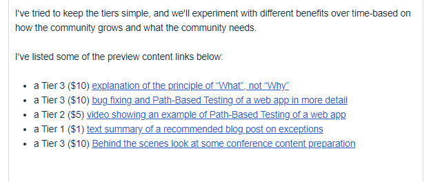 For instance I added links to preview content in the copy to help people see what they will get access to when they sign up as a Patron.