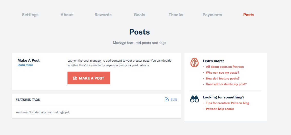Finally you’ll want to start creating posts so that when you go live with your Patreon you have content their that justifies people giving you money.