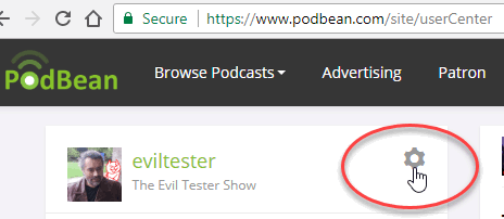 I click the settings or “cog” icon from my PodBean admin home screen.