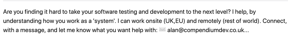 Are you finding it hard to take your software testing and development to the next level? I help, by understanding how you work as a ‘system’.