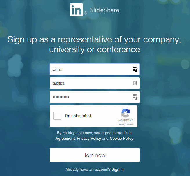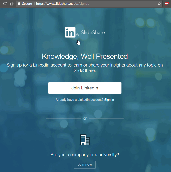 When I go to sign up on SlideShare it looks like I need to join LinkedIn.