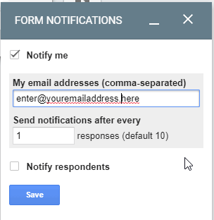 - Enter your email, and notify after every 1 response
