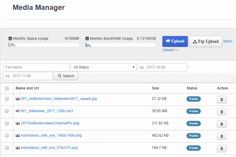 I could also use the Media Manager to upload images and audio files, or I could upload via FTP.