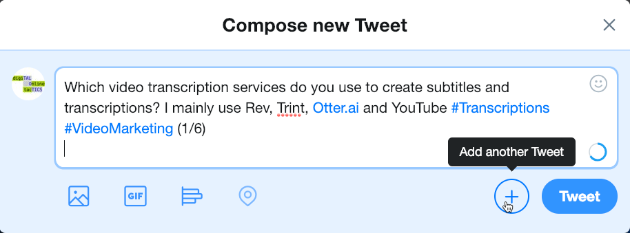 Clicking this allows you to add a tweet which will be posted as a reply to the previous tweet allowing you to create a tweetStorm